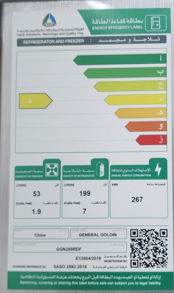 ثلاجة جنرال جولدن 8.9 قدم فضي